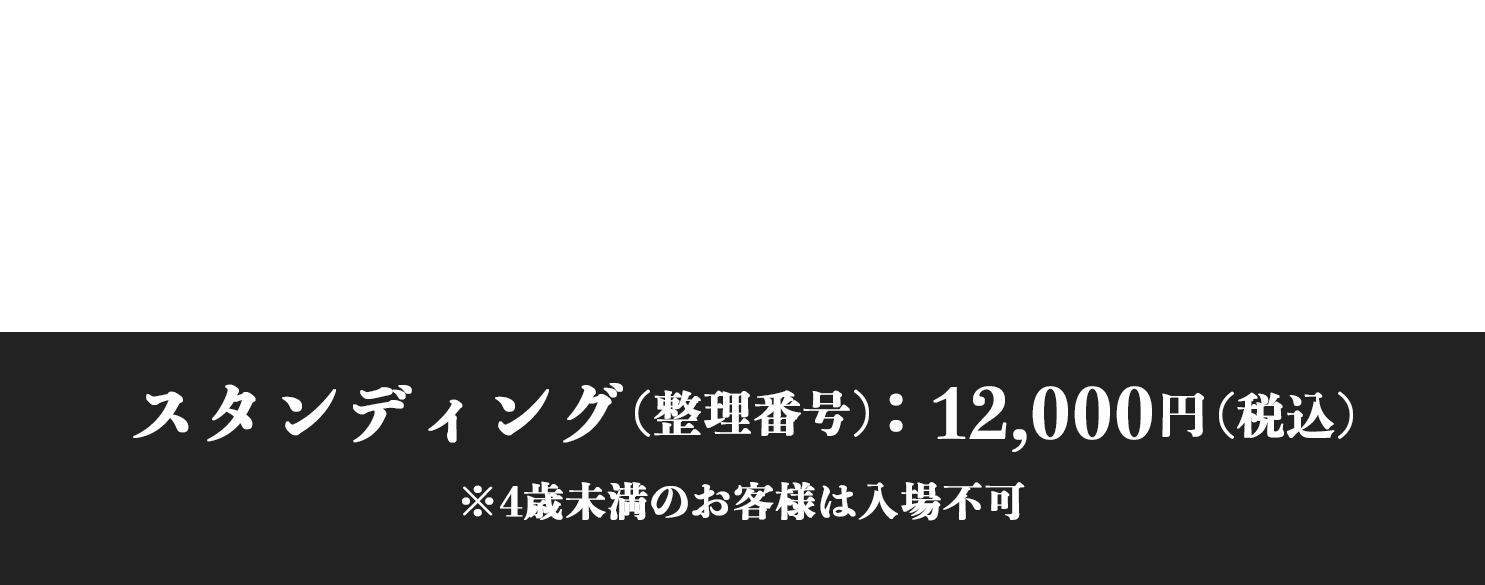 4才以上はチケットが必要となります。(札幌・広島公演を除く) - 札幌・広島公演は4歳未満のお客様は入場不可となります。4歳以上はチケットが必要となりますが、オールスタンディングのため座席はありませんのでご注意ください。