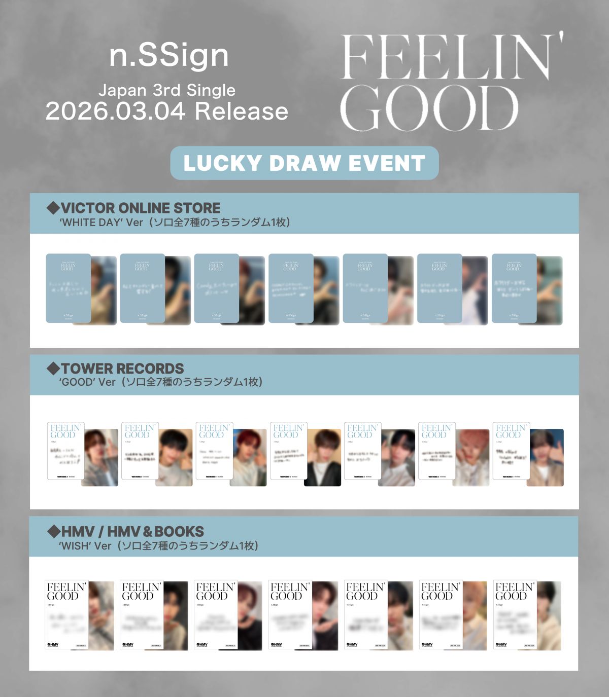 n.SSign Japan 3rd Single「FEELIN’ GOOD」の発売を記念して、VICTOR ONLINE STORE、TOWER RECORDS、HMV/HMV&BOOKSにて「ラッキードローイベント」の開催が決定いたしました!